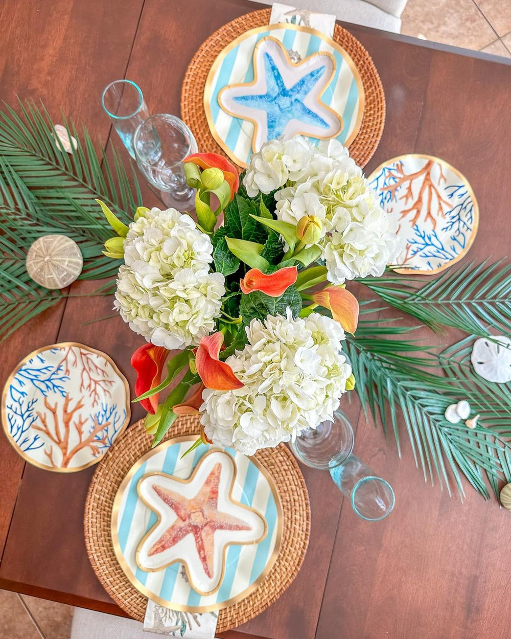 • Color: Coral imagery in beige background