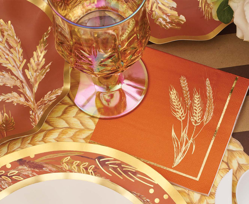 These warm, autumnal cocktail napkins are the perfect addition to any seasonal party. Feature sparkling, metallic gold accents, they are the perfect way to elevate any event. Whether used to hold appetizers or placed under your beverage at the dinner table, these napkins bring both practicality and elegance to any occasion!