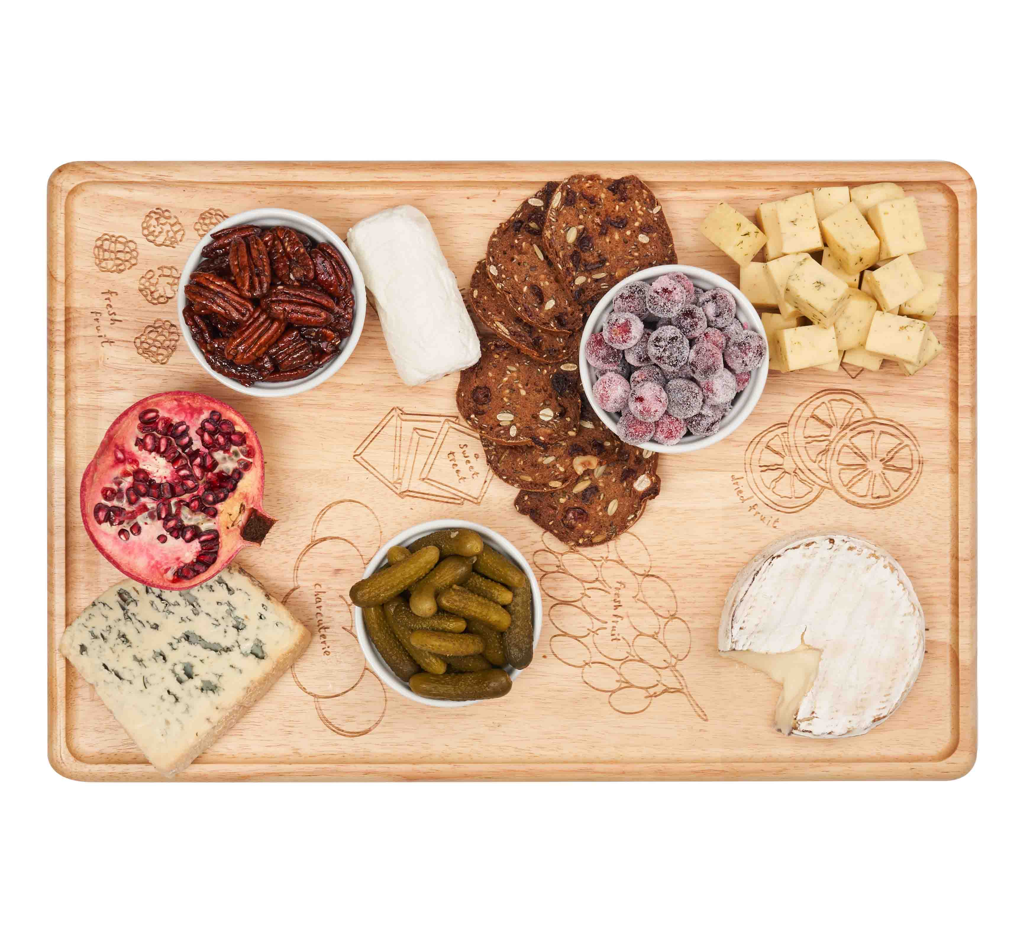 If you only ever have one charcuterie board, this is it! Not only is this wood board beautifully crafted with a finish that makes washing easy, but it also acts as an easy-to-follow visual guide of what items to shop for and where to place them. Impress your guests with a professional-looking charcuterie board or be the greatest gift-giver and wrap it up with a bow for the hostess on your list.