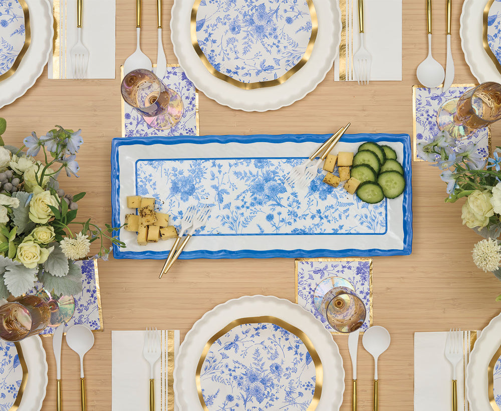 Serve in style with our Rectangular Melamine Serving Tray from the Timeless Collection, featuring an elegant floral design in serene shades of blue on a crisp white background. This tray embodies classic sophistication, making it perfect for presenting appetizers, desserts, or drinks at any gathering. Durable and graceful, it adds a touch of timeless charm to any occasion. Ideal for tea parties, formal dinners, or casual celebrations, this sturdy platter is perfect for serving snacks, appetizers, or main dishes while elevating your table with effortless style.