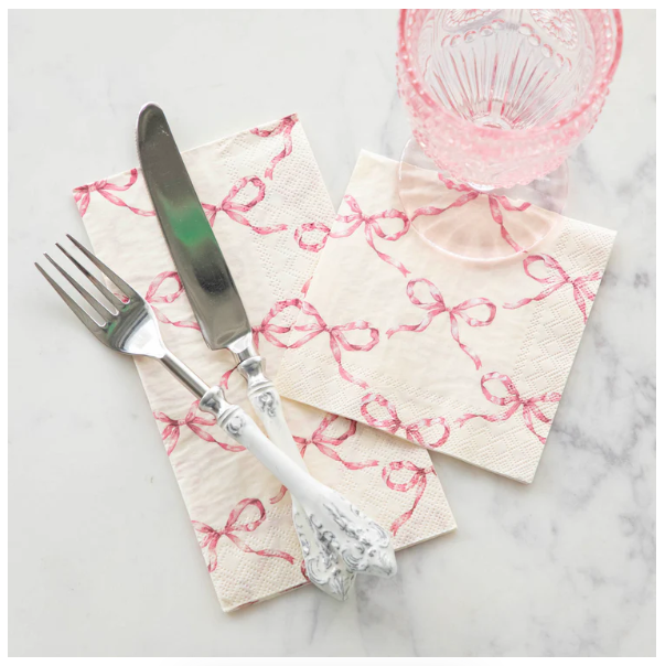 Pink Bow Lattice Guest Napkin - Pack of 16