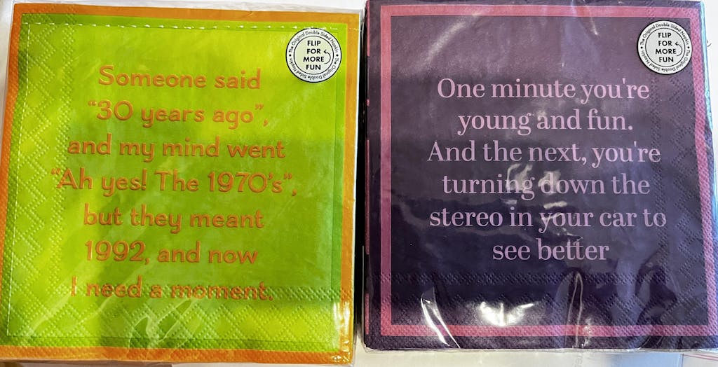 The Original Double Sided cocktail napkin has laugh out load, hilarious statements on both sides of the napkin with a fun contemporary design on the inside. Package includes (20) 3 ply cocktail napkins 5"x5"