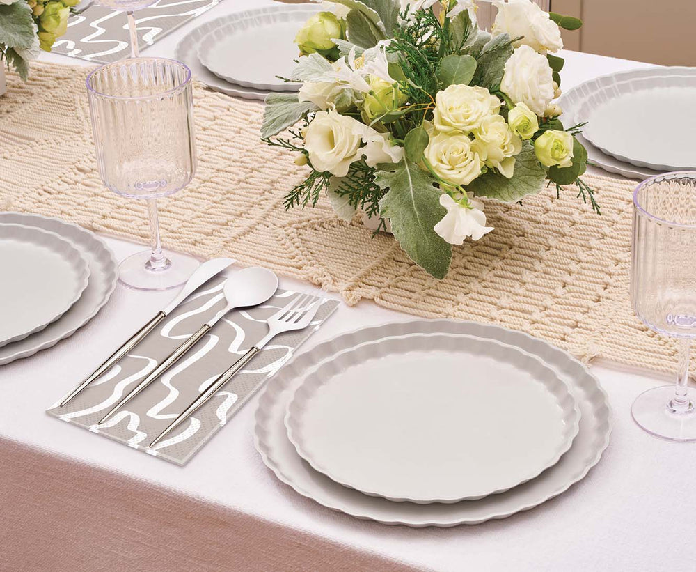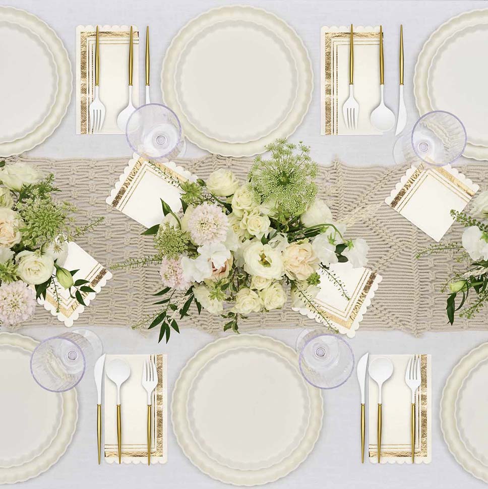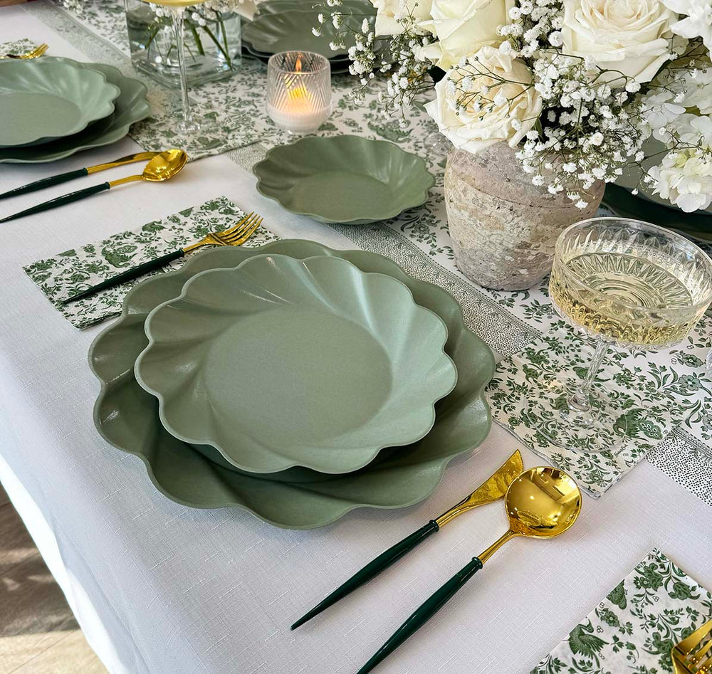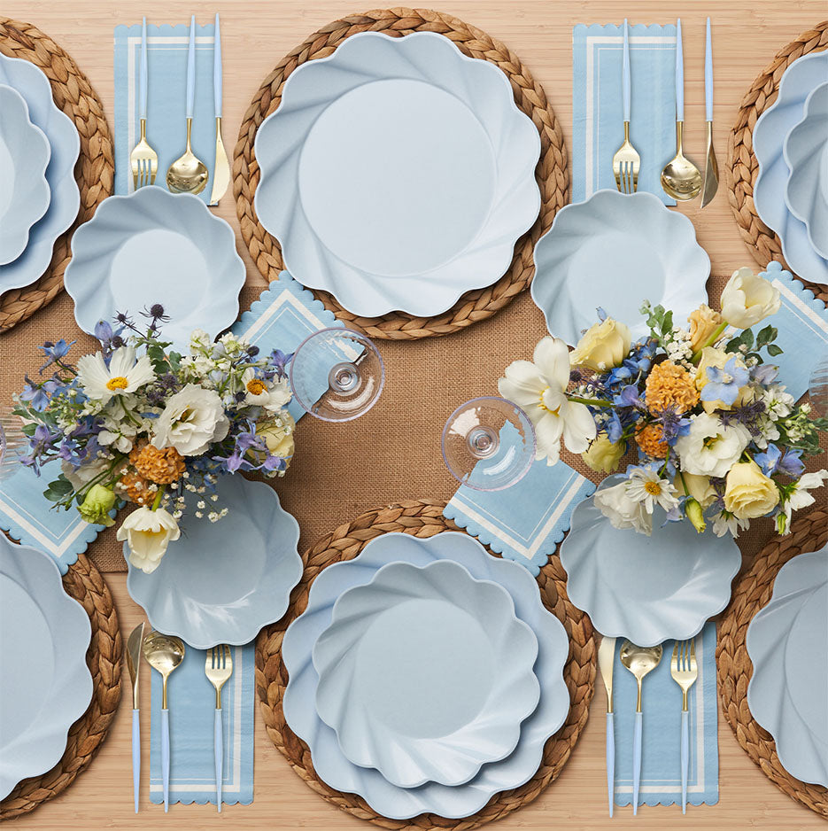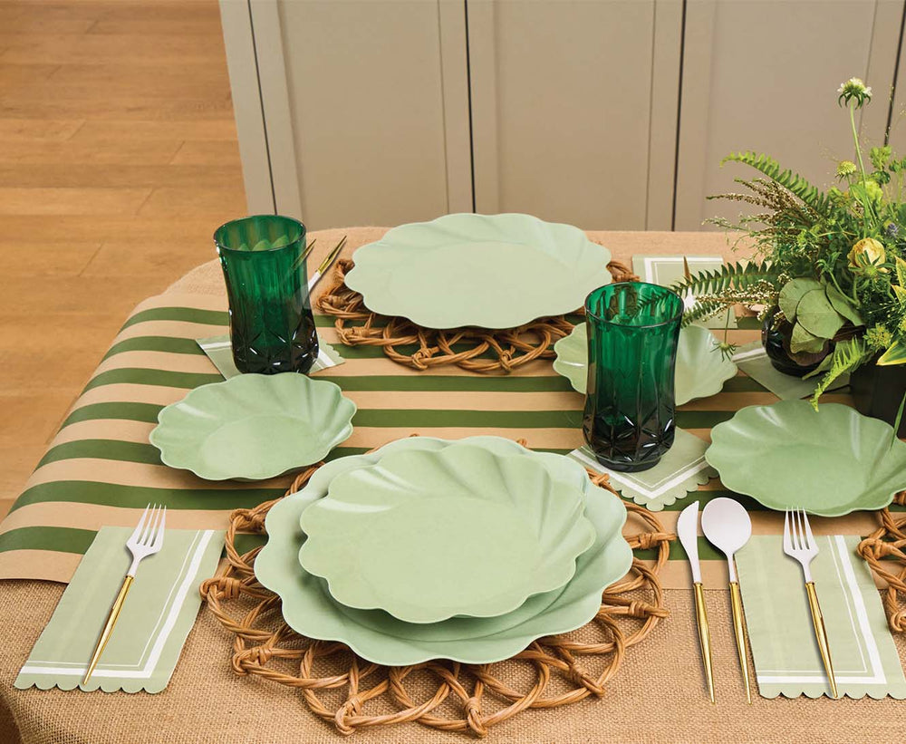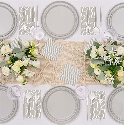 Sustainable meets Sophisticated in our new beautiful new line of eco-friendly tableware! Made of heavy-duty bamboo, our compostable dinner plates offer both style and durability- perfect for any and every occasion. Our compostable disposable plates are extremely sturdy and can handle any amount of food you pile on! These compostable party plates are crafted with both aesthetics and environmental responsibility in mind! Make hosting your next event effortless with our line of eco friendly plates, napkins, and silverware.