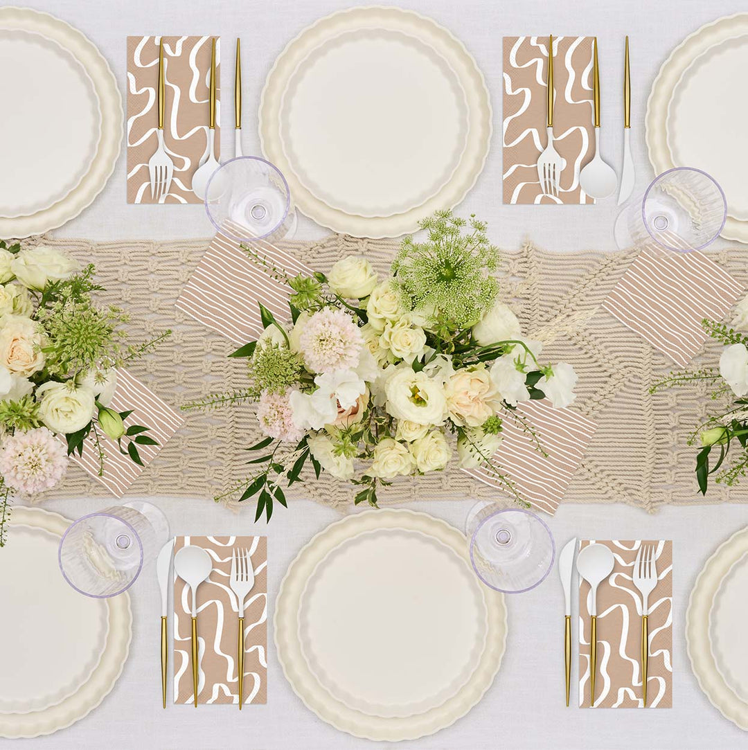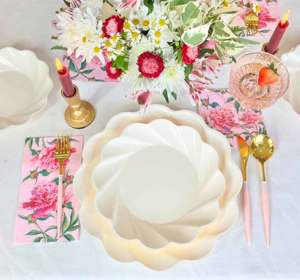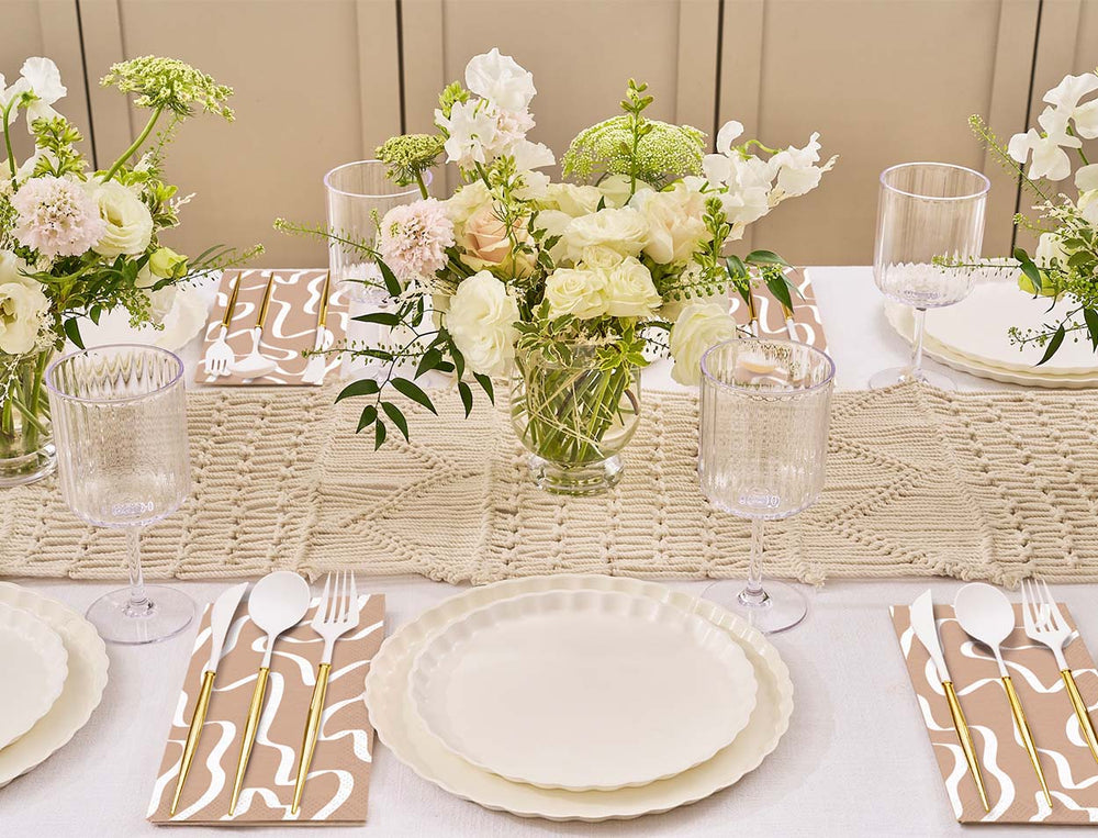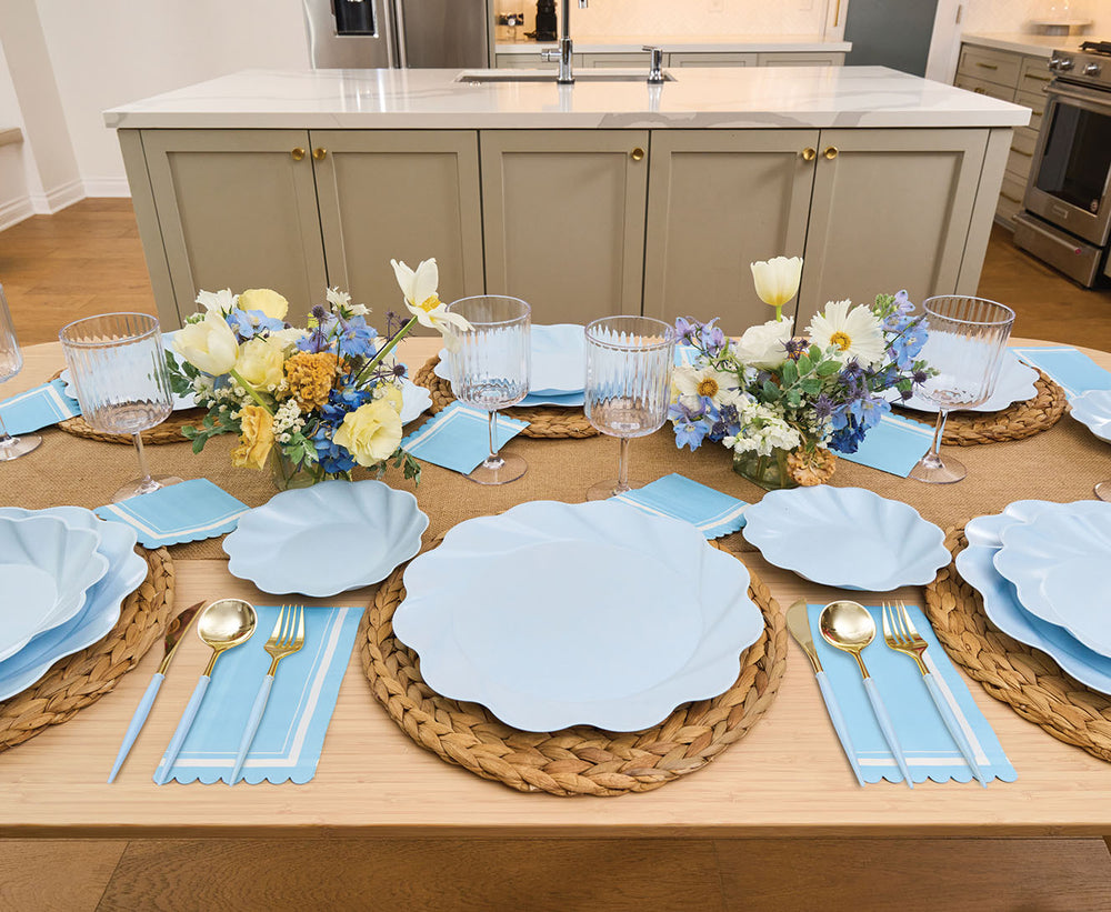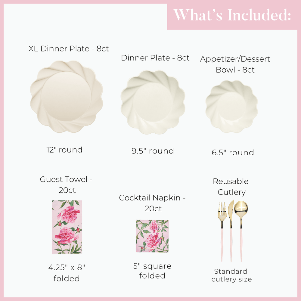Sustainable meets Sophisticated in our new beautiful new line of eco-friendly tableware! Made of heavy-duty bamboo, our compostable dinner plates offer both style and durability- perfect for any and every occasion. Our compostable disposable plates are extremely sturdy and can handle any amount of food you pile on! These compostable party plates are crafted with both aesthetics and environmental responsibility in mind! Make hosting your next event effortless with our line of eco friendly plates, napkins, and silverware.