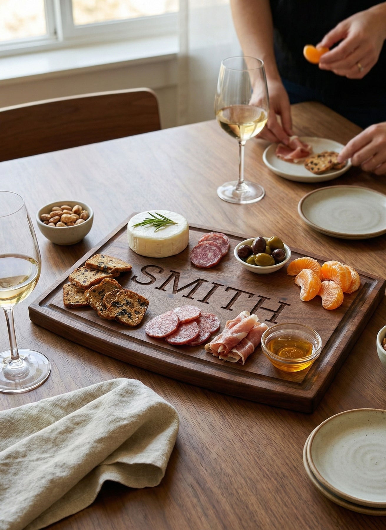Personalized Arched Artisan Walnut Board | Family Name | 12 x 9"