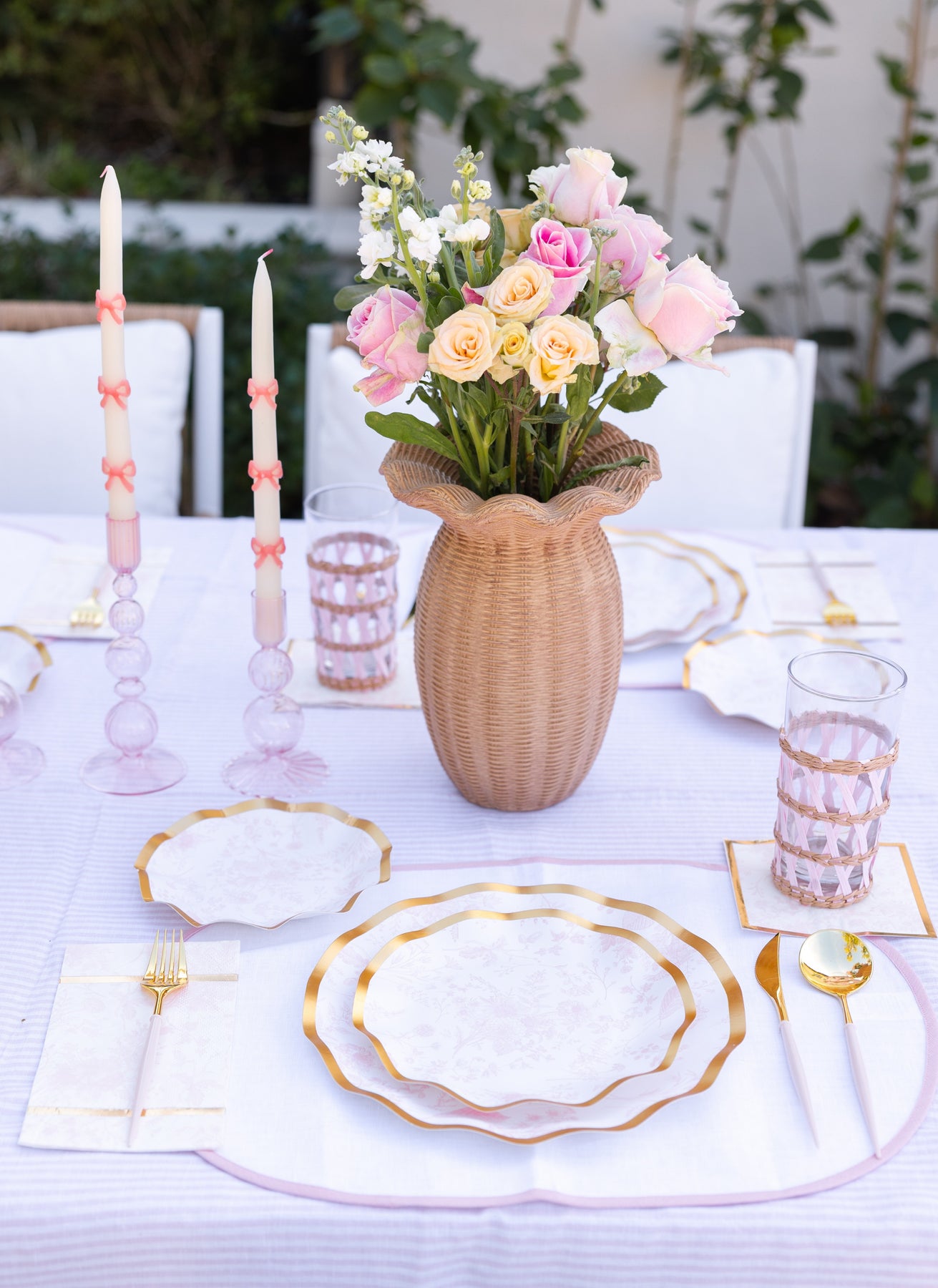 These guest towel napkins from our feature a classic floral pattern in pink and gold foil accents. They're the perfect way to add a touch of elegance to any gathering. Whether used as a stylish dinner napkin or as an elegant guest towel for your bathroom or powder room, these timeless napkins are perfect for any occasion.