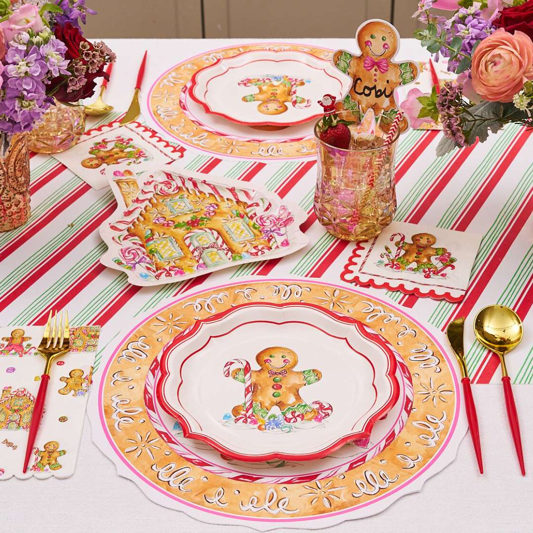Elevate your Christmas table with these adorable gingerbread cup accents! Crafted from premium card stock, these name cards add both charm and convenience to your tablescape. Each card is die cut with two slits in the bottom for the ability to perfectly place on your glassware!