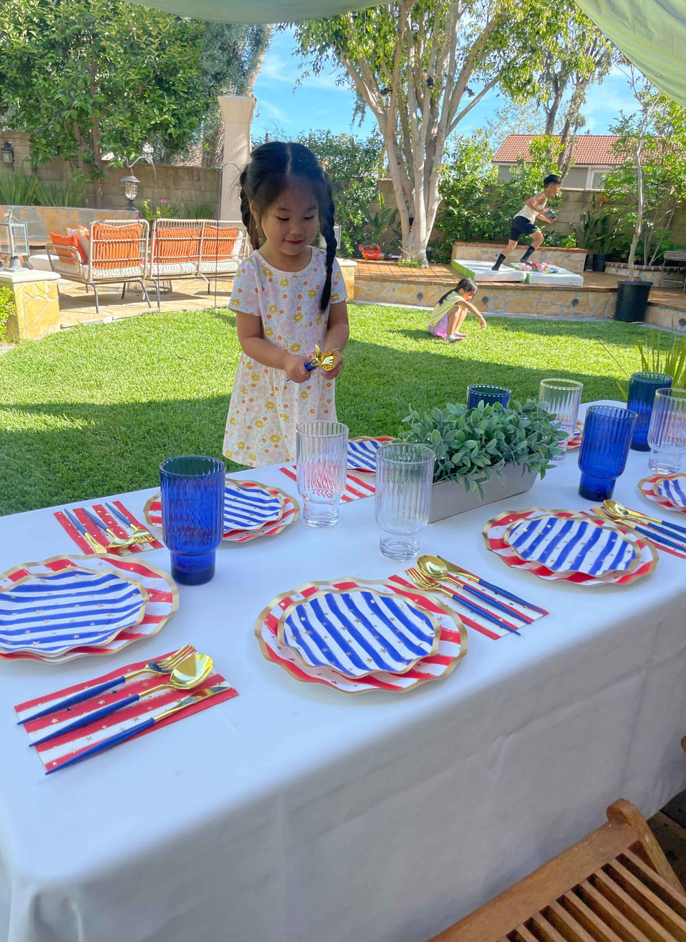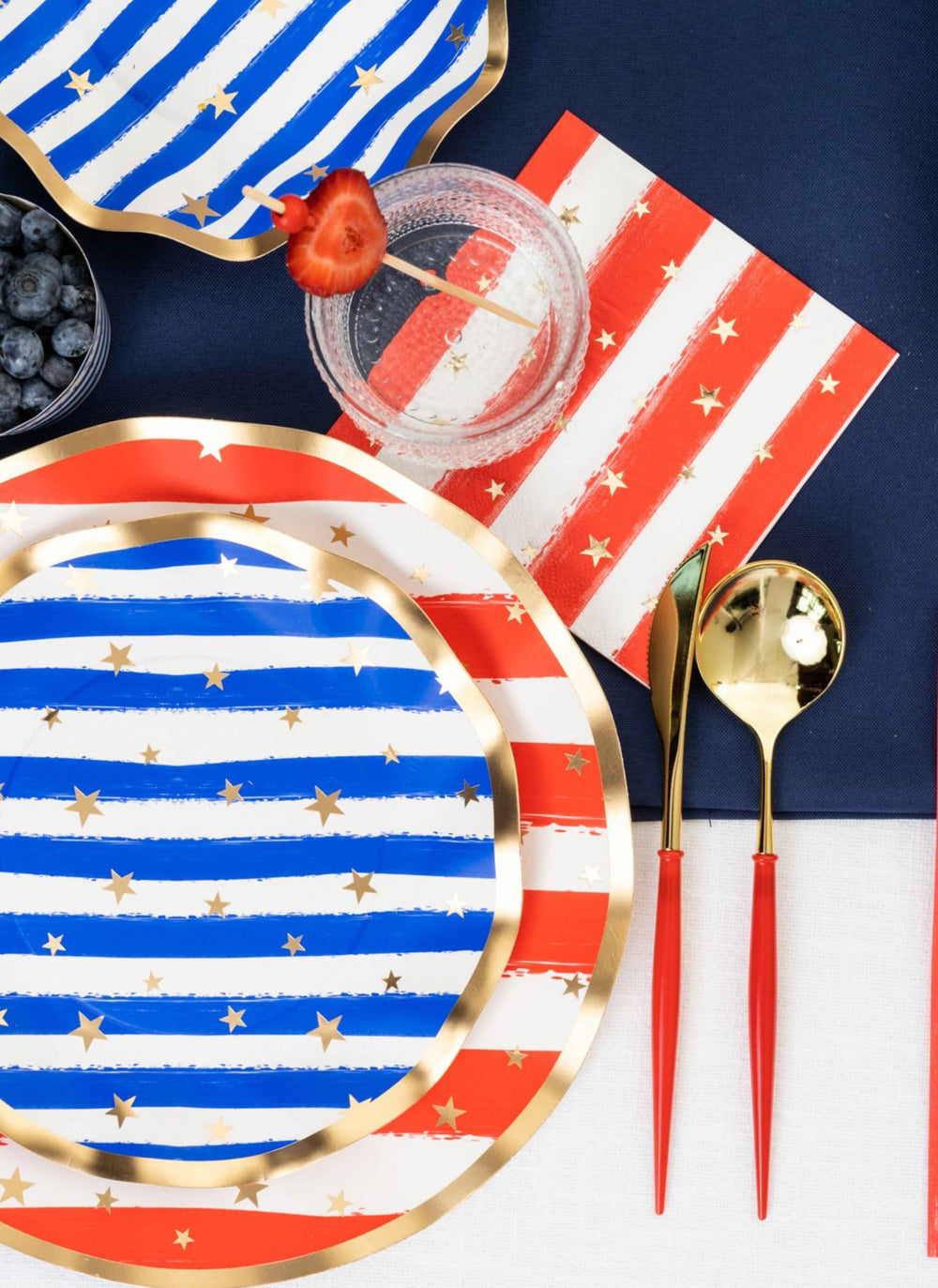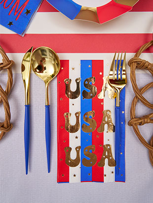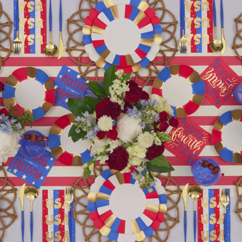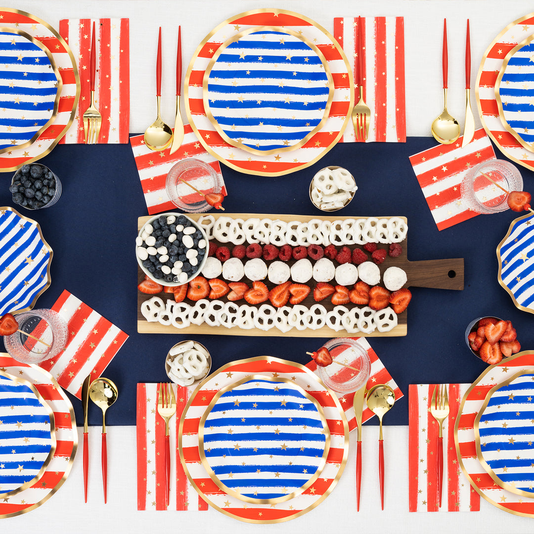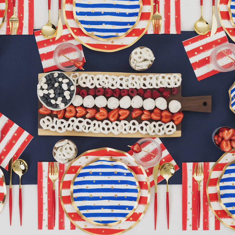 Celebrate the Red, White, & Blue this season with our Patriotic themed items! From BBQ plates, and themed napkins, to disposable cutlery, outdoor wine glasses, and grilling boards, we have it all to help your backyard BBQ shine under the fireworks this year! Stock up on Instagram-worthy 4th of July partyware and 4th of July paper plates!