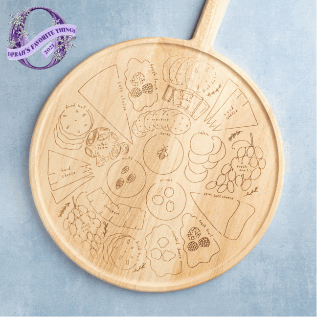 If you only ever have one charcuterie board, this is it! Not only is this wood board beautifully crafted with a finish that makes washing easy, but it also acts as an easy-to-follow visual guide of what items to shop for and where to place them. Impress your guests with a professional-looking charcuterie board or be the greatest gift-giver and wrap it up with a bow for the hostess on your list.