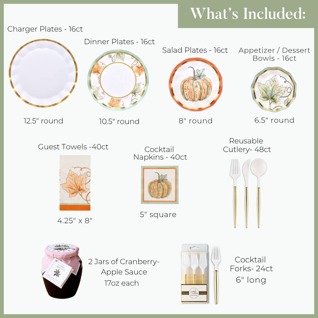 Bundle & Save 25%! We've curated the Ultimate Thanksgiving Tablescape to make entertaining easy & Instagrammable. A curated party-in-a-box, with everything you need to effortlessly create a professional, disposable, Thanksgiving table setting. Skip the overpriced china without sacrificing style. Our designer disposable plates will save you time and money.