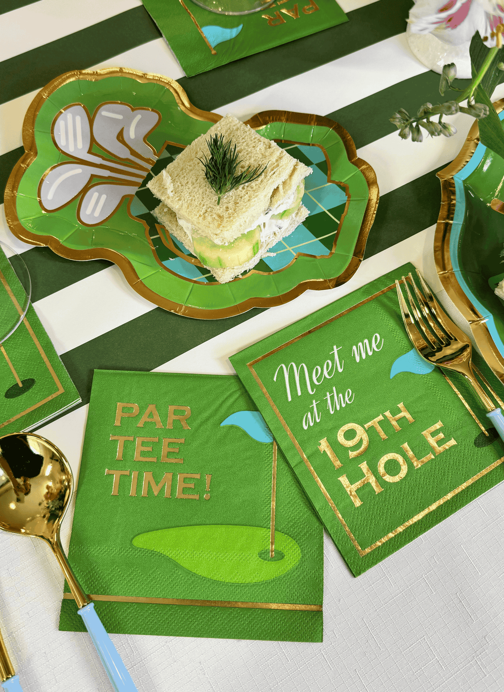 These golf-themed cocktail napkins featuring shimmering gold foil accents are the perfect way to elevate any event. Whether used to hold appetizers or placed under your beverage at the table, these napkins bring both practicality and a touch of sporty elegance to any occasion!