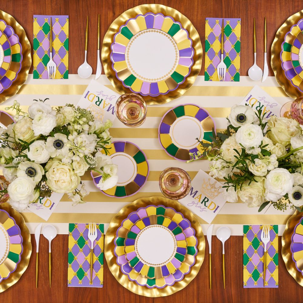 OMG It's Paper: Bring the vibrant spirit of Mardi Gras to your table with the Let’s Mardi collection. Featuring bold yellow, purple, green, and gold hues, each piece is designed to capture the festive energy of the celebration. Perfect for adding a playful, joyful touch to any gathering.