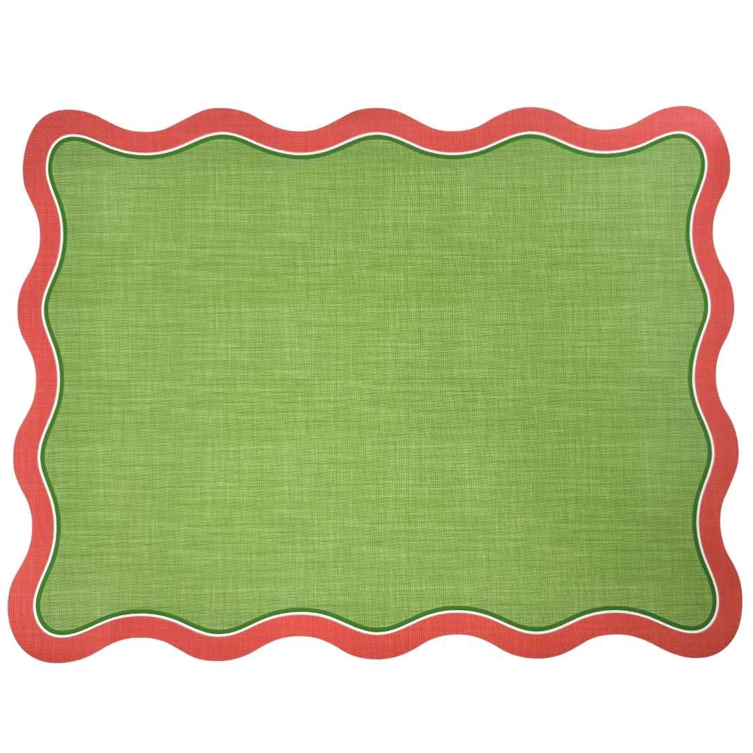 Elevate your table setting with our stylish scalloped edge placemats! Crafted from premium card stock, these placemats add both charm and convenience to your tablescape. The trendy wavy edges bring a modern touch and sets the perfect scene for any gathering.