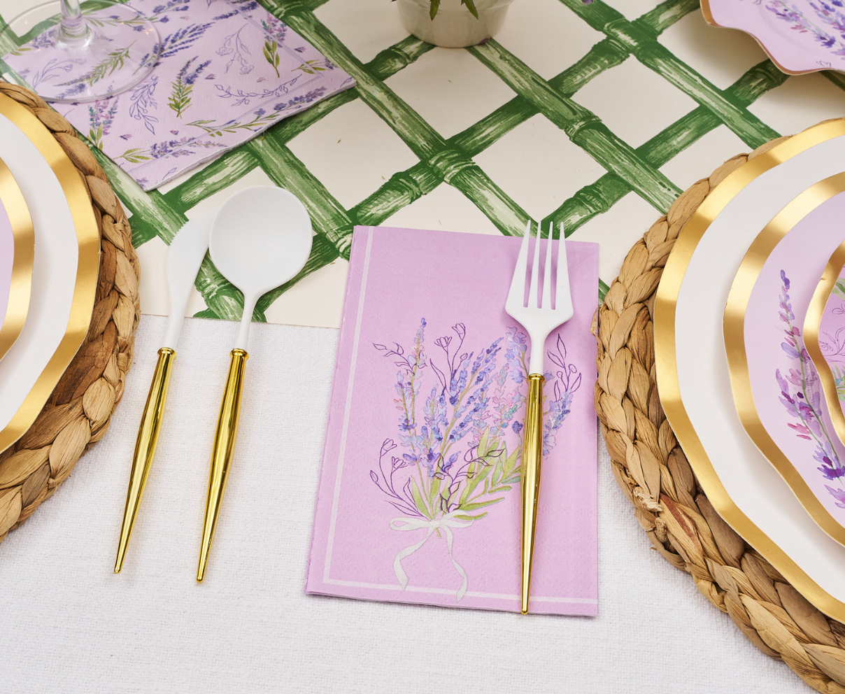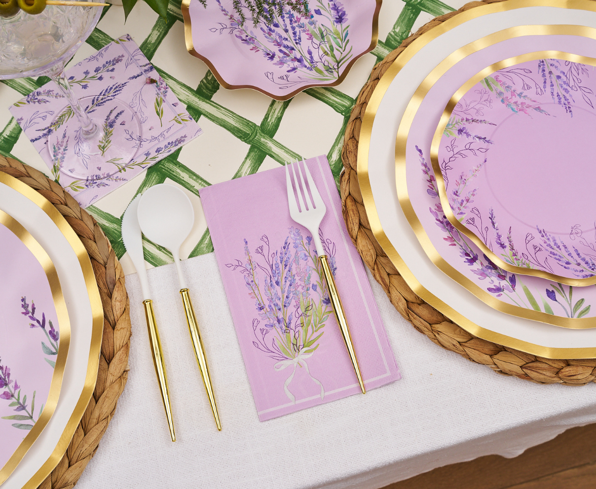 These guest towel napkins from our Lavender Fields collection feature a soft lavender background with a delicate illustration of a lavender bouquet. With their elegant floral design and fresh color palette, they’re the perfect way to bring a touch of springtime charm to your seasonal gatherings.
