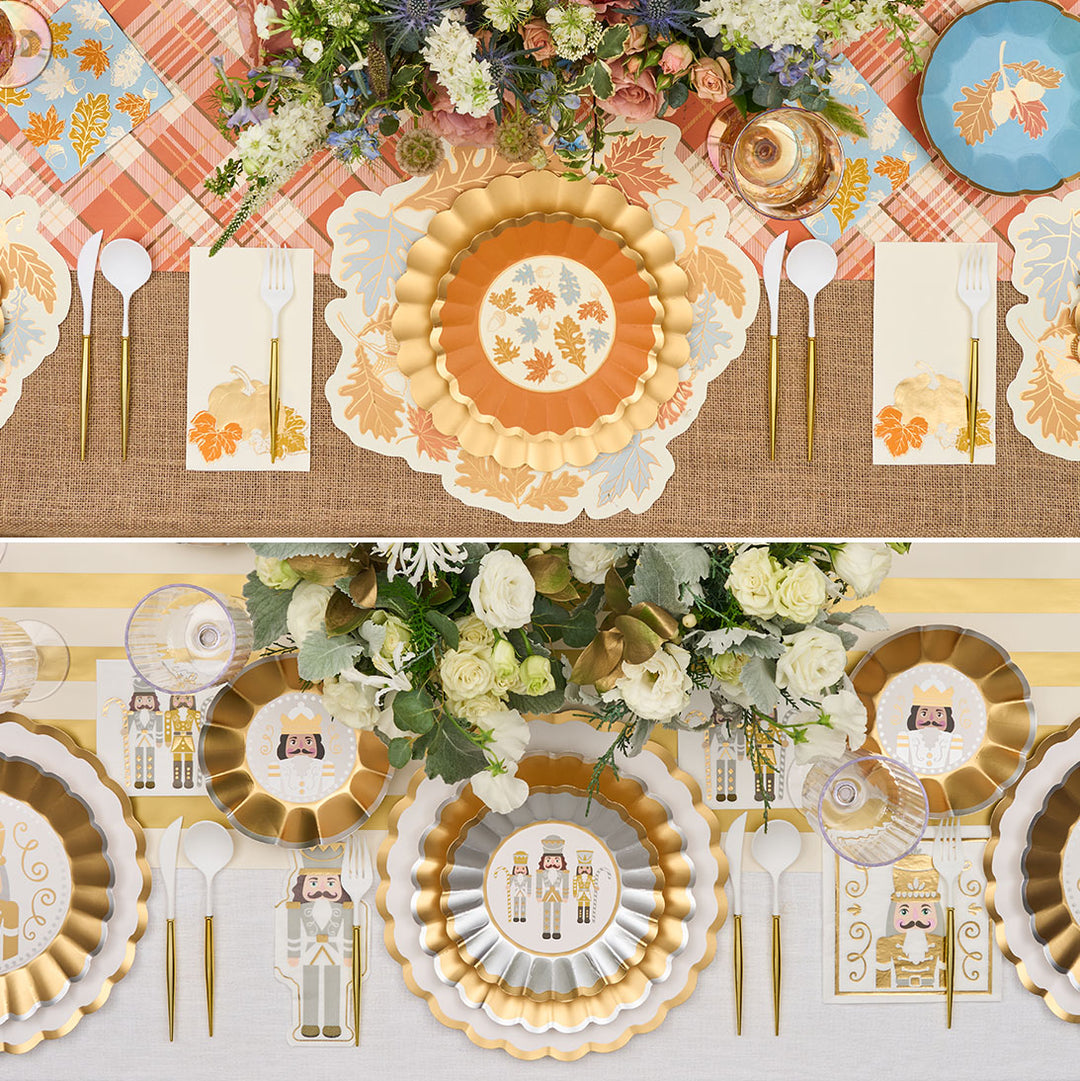 Create a professional tablescape your guests will never forget! Our Thanksgiving paper plates in autumnal hues are a feast for the eyes that your guests will not believe are paper! These disposable autumn plates are fancy enough to double as Thanksgiving decor as well saving you time and money. Spend more time with loved ones around the table and less time cleaning up with our Thanksgiving party plates.