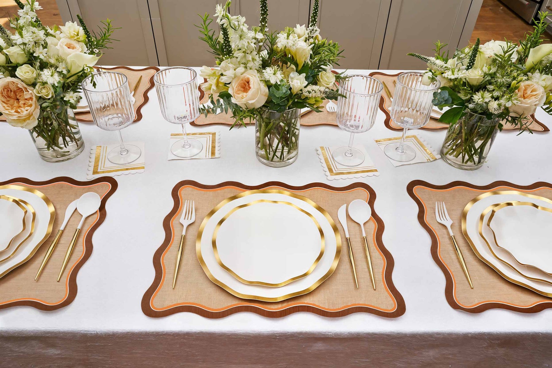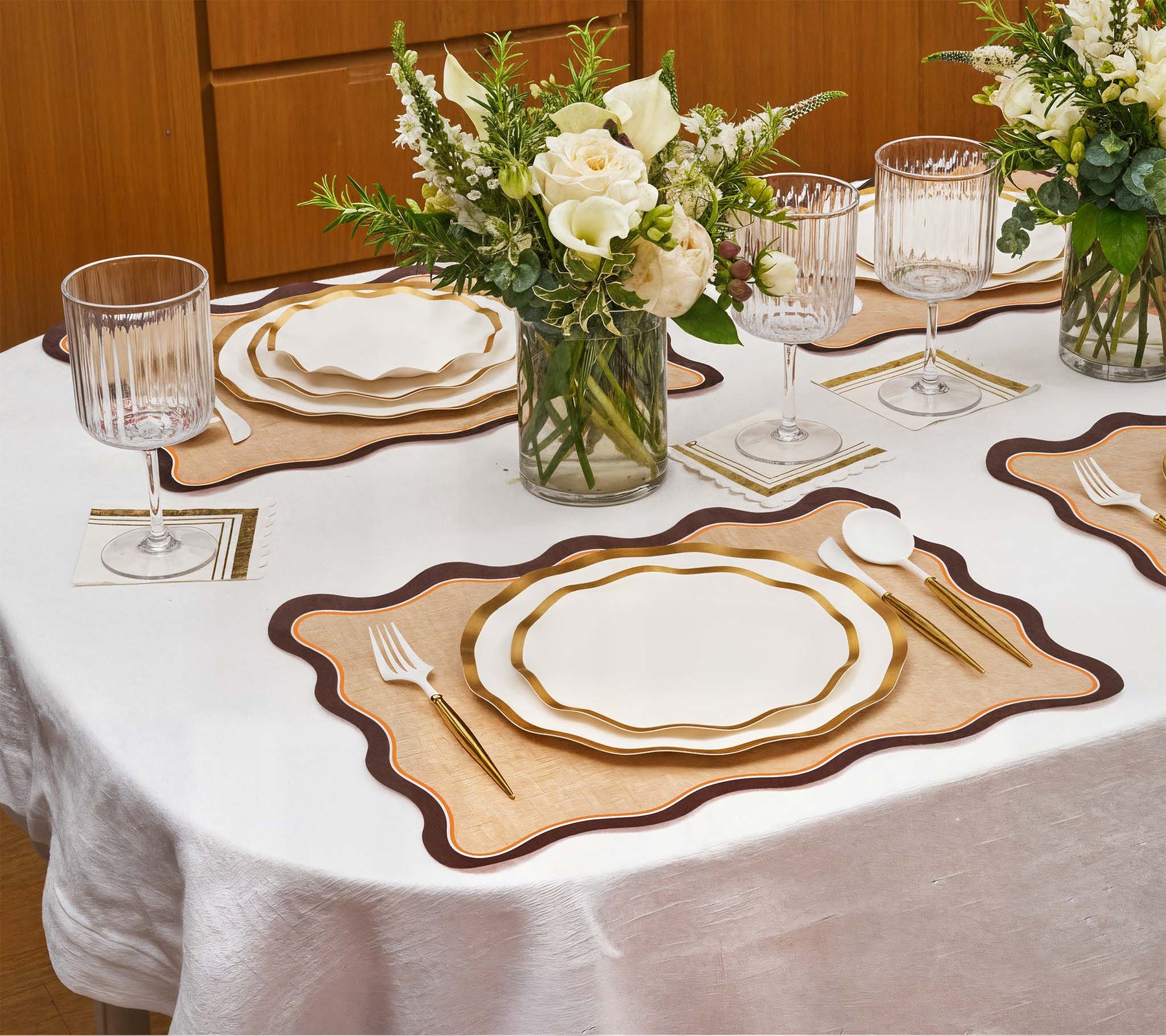 Hosting Made Easy: Take the guesswork out of decor with our tablescape-in-a- box! Our decorative disposable plates allow you to create an Instagram-worthy table effortlessly.