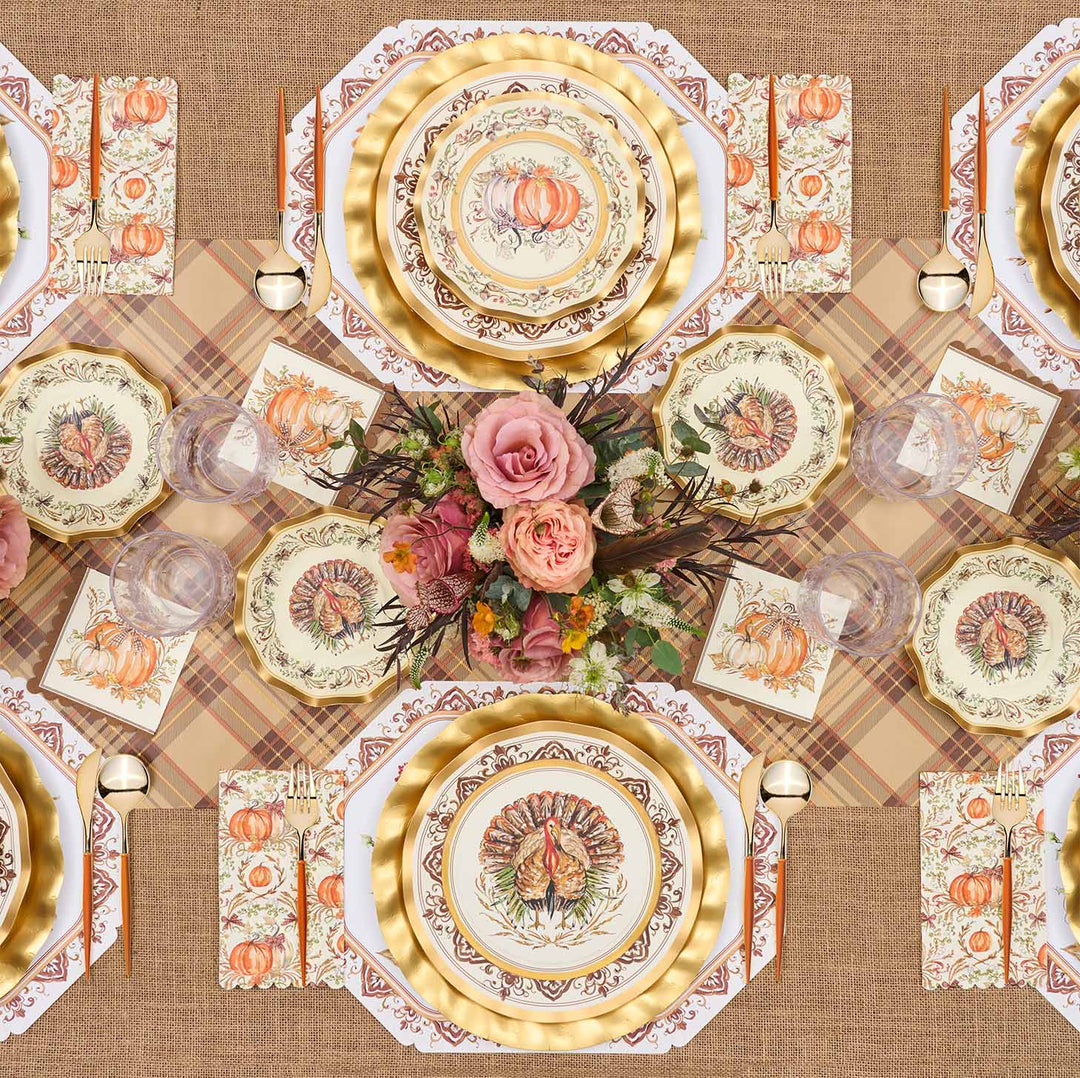 Create a professional tablescape your guests will never forget! Our Thanksgiving paper plates in autumnal hues are a feast for the eyes that your guests will not believe are paper! These disposable autumn plates are fancy enough to double as Thanksgiving decor as well saving you time and money. Spend more time with loved ones around the table and less time cleaning up with our Thanksgiving party plates.
