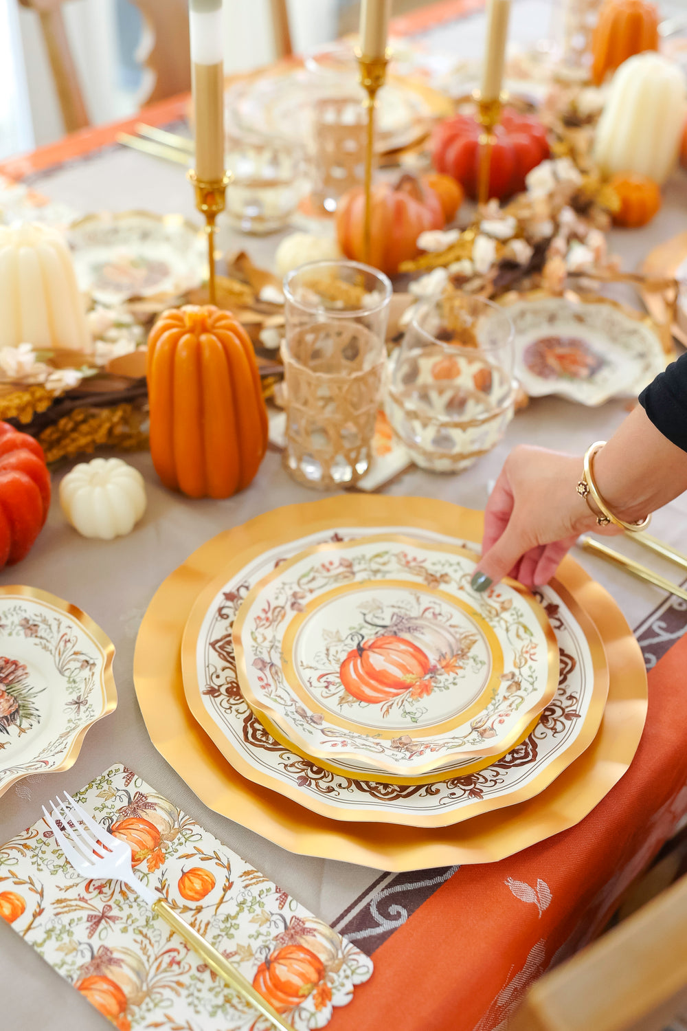 Create a professional tablescape your guests will never forget! Our Thanksgiving paper plates in autumnal hues are a feast for the eyes that your guests will not believe are paper! These disposable autumn plates are fancy enough to double as Thanksgiving decor as well saving you time and money. Spend more time with loved ones around the table and less time cleaning up with our Thanksgiving party plates.