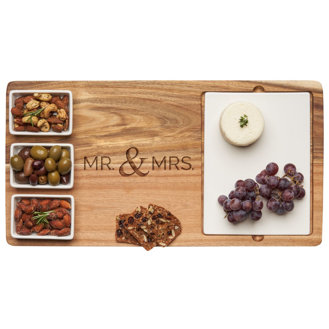 Acacia Fête Set Tray | Mr. & Mrs. | 18" x 9.5"