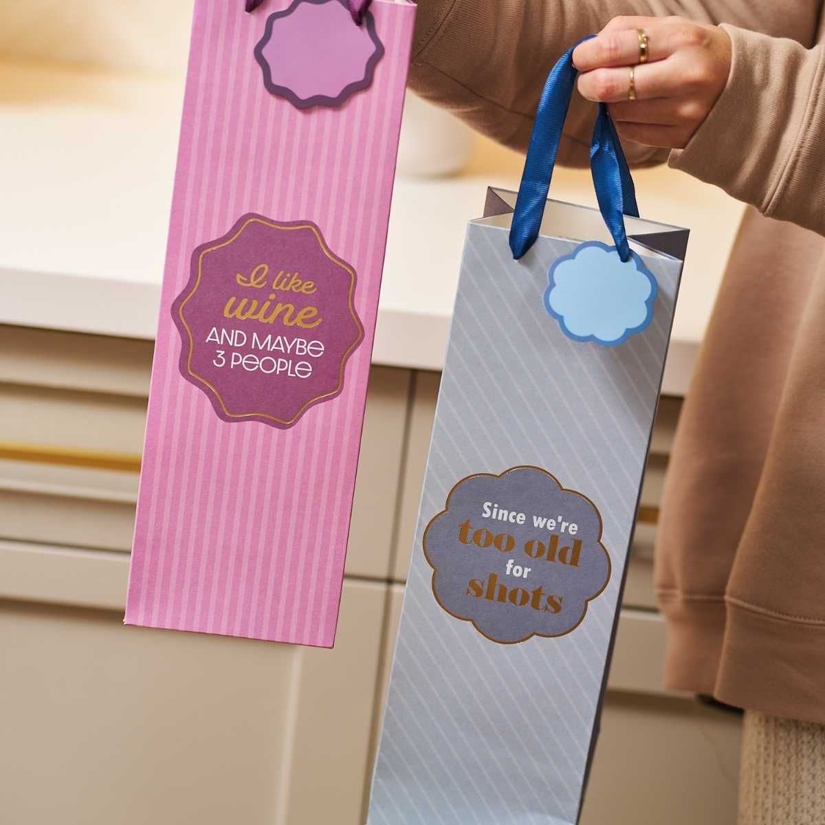 It fits most standard wine bottles and instantly upgrades your gift from "I grabbed this on the way" to "Yes, I am the fun one." Practical, reusable, and hilarious. It's the easiest way to bring personality to the party — along with the wine that helps everyone tolerate each other.